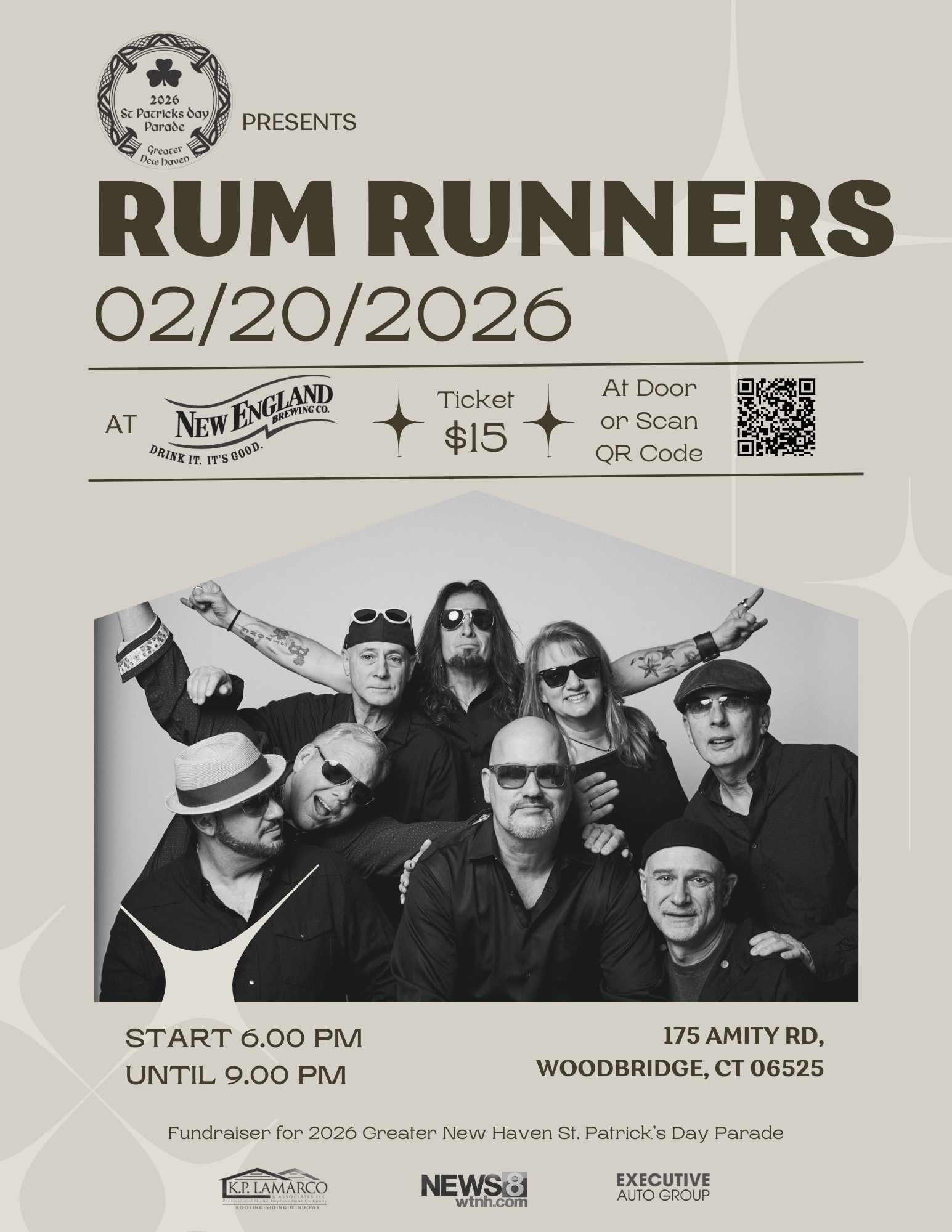 One of our favorite perennial events is coming up on Friday, February 20th – RumRunners at NEBCO in Woodbridge! This popular band plays all the best hits across the decades. We are thrilled to be back again with parade sponsor New England Brewing Company and it’s sure to be a night filled with great music, brews and people! This event is $15 per person and 21+ event to attend.
